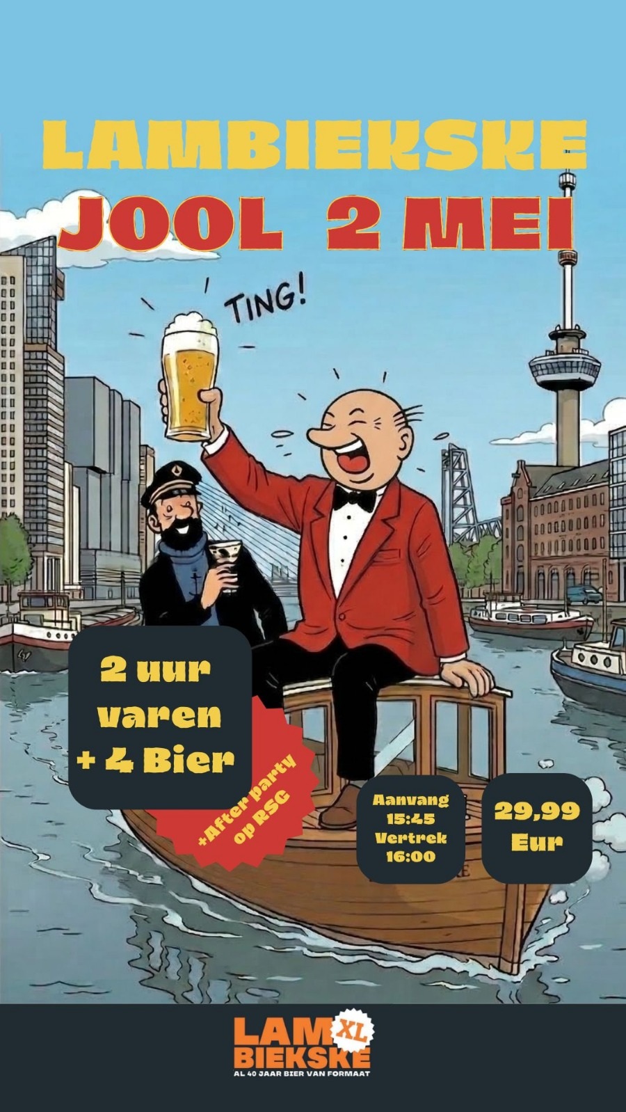 Ter ere van het 9e Lustrum van Lambiekske organiseert de vorige lustrumcommissie een bootjool voor leden en reünisten. Vaar jij ook mee? Je kunt je inschrijven via https://forms.gle/w3A5a6vMYuCVdpYr6.